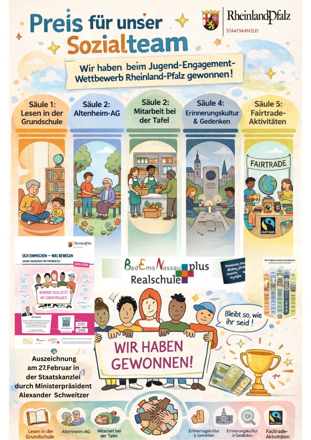 Das Sozialteam der Realschule plus Bad Ems Nassau wurde beim Jugend-Engagement-Wettbewerb Rheinland-Pfalz 2025/26 als Preisträger ausgezeichnet.